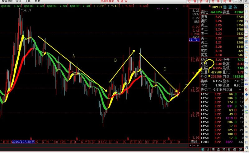 刚好是处于一个A_B_C三浪下跌结构完成之后的启动阶段。倘若按照波浪理论而言,这是一波1-5浪的启动。当然,现实未必如此办照书本,但现实是书本总结的基础,我们显然对后市有看好的期望。大胆假设,小心求证,我们可以在实盘中验证这一看法。符合继续持有,不符合不用犟。可预期的风险,是可防控的风险,反而不会害死猫。