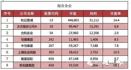 总之,这八家公司都不是等闲之辈,但市盈率都不高。这些综合类公司不是拿来炒的,如果信得过它们的团队,就长期持有吧。
