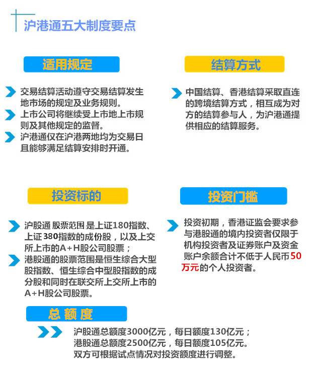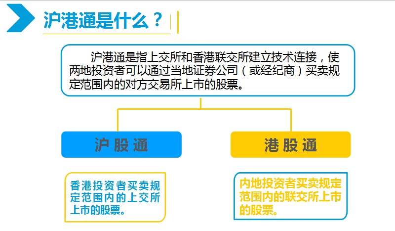 试点初期,香港证监会要求参与港股通的内地投资者限于机构投资者,个人投资者的投资条件为证券账户及资金账户余额合计不低于人民币50万元。  试点初期,沪股通股票范围包括上证180指数及上证380指数成份股,以及上海证券交易所上市的A+H股票;港股通股票范围为恒生综合大型股指数、恒生综合中型股指数成份股、以及上海证券...