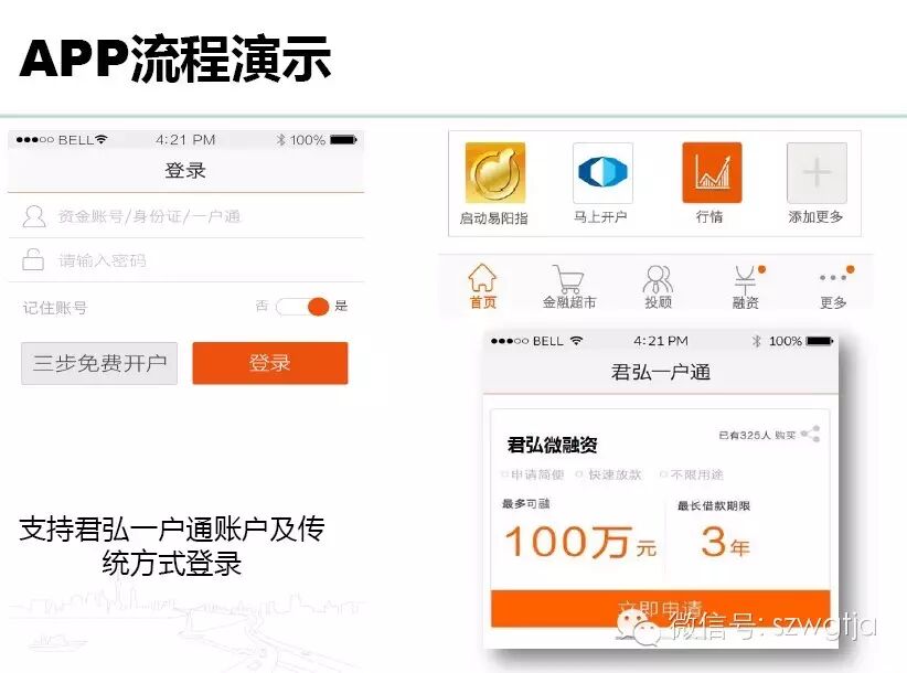 或者在appstore ,android的各大应用市场里搜君弘一户通,手机上也可以申请做微融资了;
