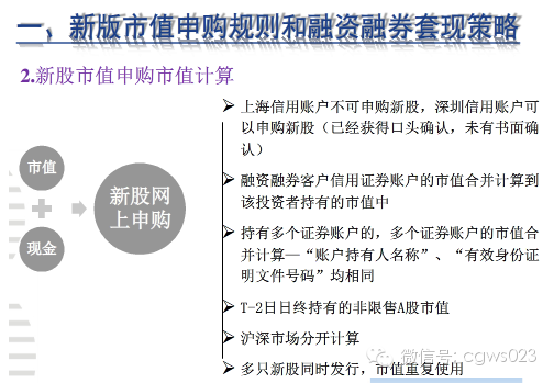融资融券账户新股申购规定:【1】信用证券账户的市值与客户持有的其他证券账户合并计算,深圳市场计算市值的范围包括深圳市场主板、中小板和创业板的非限售A股股份市值。【2】深圳市场客户只能使...
