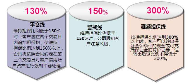 当该比例低于130%时,客户应当要在两个交易日内追加保证金(现金和股票都可以)