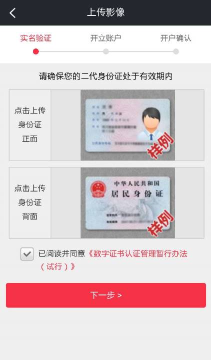 1、请仔细核实系统读取的身份证信息是否正确,若上传信息有误,将无法进行下一步操作。