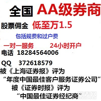 《全国股票佣金低至.5,量大可.3包括规费和过户费》 《股票开户咨询热线:18284564006》 《股票开户咨询Q Q :372618579》 《我是我司李经理,欢迎预约我并办理股票账户、融资融券、创业板、期货、期权、新三板业务、债券正逆回购》 炒股开户,股民很头疼的事情有那么几个地方,(1)开户十几年了,佣金收费那么高,以前的开户公司也不知道搬到哪里去,怎么调佣金,也没个客户经理帮忙!这样会使股民交易的成本很高,自身权益得不到保障(2)老股民对最为新式的交易软件还有一些新鲜事物的接受程度较低,这样一来,交易的速度和风险也会对其造成很大的影响!那么陶经理为你给出几个建议 选择低佣的大型券商求办理新的账户交易,我司佣金开户,最低可以做到.5,理财经理一对一服务!再者,节省了你的交易成本!其次我司预计2016年上市,目前已经提交IPO,成为了股民朋友认可的一家上市大企业! 成都青羊区附近有哪家证券公司?成都我司全国大型综合证券公司,拥有给力的投资顾问团队和超低的交易手续费,无论是老股民还是新股民都可以在我公司享受不一样的投资服务,尊敬的投资者欢迎你们加入我司成都公司。 亲爱的成都投资股票的朋友你们好:最好的服务,最合理的交易手续费,一个电话两种优化套餐,可能使你的年交易佣金化为零,我们可以为您最到别人做不到的服务,超级价值信息资讯,只有你想不到了,没有我们办不到的。 |