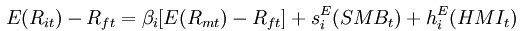 例如:Fama和French在1993年指出可以建立一个三因子模型来解释股票回报率。模型认为,一个投资组合(包括单个股票)的超额回报率可由它对三个因子的暴露来解释,这三个因子是:市场资产组合(Rm Rf)、市值因子(SMB)、账面市值比因子(HML)。
