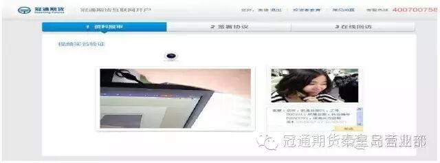 9、 视频接通: 开户专员会与客户进行视频对话,视频验证完成点击下一步
