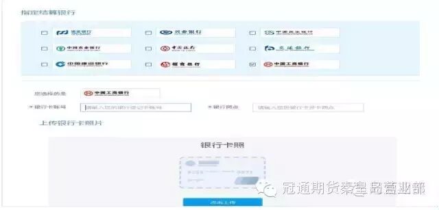 7、 选定结算银行:点击相应银行—输入银行帐号和开户行—上传银行卡照片--下一步