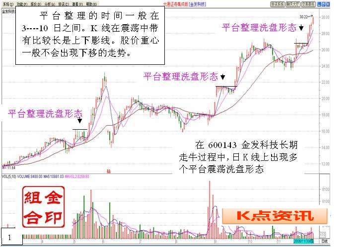 在个股的波段上升过程中有时会出现多个平台震荡洗盘形态。这类型个股一般都是长期上升的大牛股!