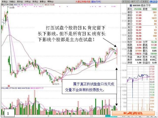 现阶段市场中,一个股票在主力机构大幅度介入持有大量筹码的同时也有其它的投资机构买入并持有。同一股票,持有最多筹码的机构属于主力机构,也是我们平常所说是庄家。在其它介入的投资机构中有与主力机构有密切合作关系的盟友【共同坐庄行为】。但部分机构肯定是与该股主力机构没有任何关系而为个体投资而介其中。主力机构大幅度控制目标个股的流通筹码那么该股票的涨与跌主动权就把握在其手中。在平常所见盘口中最明显的操纵股价行为一般都是主力机构进行的。主力机构在作出股价方向性的决定和操纵时,要拉升,打压或者减仓时只要与其盟友机构事先沟通好那做盘时就不会出现什么大麻烦。但参与目标个股中与主力机构没有任何关系的其它部分机构不受主力机构的控制。结果就是在主力机构做盘时这些不受控制的机构无常的进进出出往往就成为主力机构操纵股价时的最大阻障。在拉升前,有时主力机构通过洗盘可以洗出一些机构和大户,但要全部赶出去是不可能的。所以在客观存在有比较大的资金跟庄这种不可避免的现实下,主力机构在操纵股价时会对这些机构和部分大户的资金实力,介入操作性质作一定的了解。而了解的方法就是通过日常交易的盘口观察和主力自己操纵制造的特殊【试盘盘口】去了解。