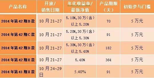 1、42期天天万利宝今日最后一天销售,明日起息,预期年化收益:5.1-5.4%。X款产品销售至周四,期限91天,预期年化收益为5.4%。