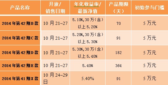 §42期天天万利宝今日最后一天销售,明日起息,预期收益:5.1-5.4%。X款产品销售至周四,期限91天,预期收益为5.4%。