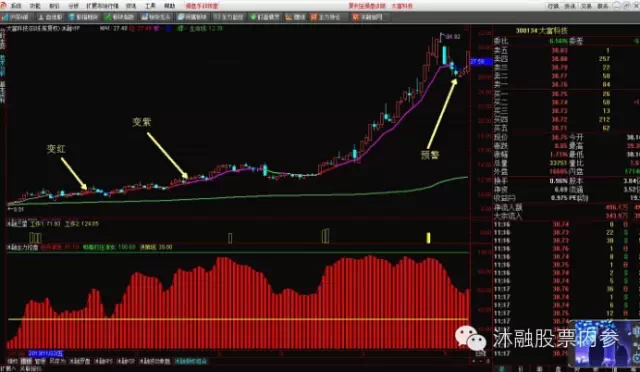 5.可选择低位多次出现连续的上10万股买单、庄股的成本价通常在30日均线附近。上述股票的吸纳方法就是根据此位置与KDJ、MACD进行分批吸纳,并且掌握好T+0方式的高抛低吸,一旦沐融VIP技术指标高位出现变蓝快速回落,迅速出局。