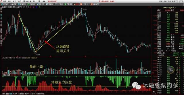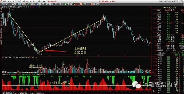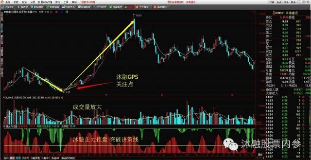 上图中出现V形反转,并且沐融GPS和沐融主力控盘发出信号,我们就可以关注它了,至于这两个指标是什么原理呢?请各位登陆我们官网:www.mrjy.com.cn进行学习。