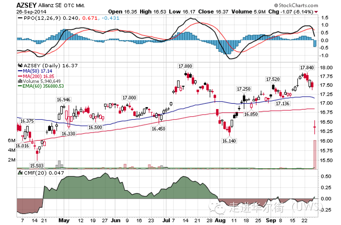 悲催的是德国安联保险公司的股价。作为PIMCO的母公司(格老很早就套现了,去年的工资加奖金收入超过两亿美元)的股票受消息打击,下跌了6%, 市值蒸发了多达50亿美元!