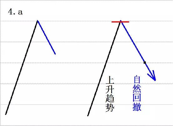2. 当股价从自然回升最高点,开始下跌,幅度达到6个点时,确认回撤,开始在自然回撤栏或下降趋势栏做记录。同时,在自然回升的最高点数字下,画一条黑色下划线。