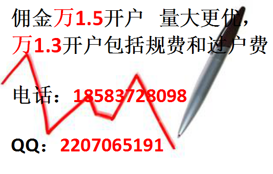 | ★【股票开户咨询:罗经理 电话:18583728098 QQ:2207065191】 ★【佣金行业最低 .5开户包括规费及过户费, 融资利率低至万5.99比肩东方财富】 ★【提供第三方炒股软件 同花顺 大智慧】 ★【欢迎预约我并办理股票账户、融资融券、创业板、 期货、期权、新三板业务、债券正逆回购】 |