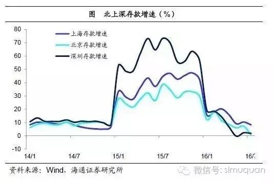 流动性拐点已现。本轮房价上涨始于15年,以北上深一线及周边城市领涨,其实是彻头彻尾的金融现象,因为房价涨幅与GDP增速无关,而与存款增速高度相关。而在15年,由于政府放松了对金融机构同业存款的监管,允许同业存款在当地发放贷款,导致作为区域金融中心的北上深存款增速出现了爆炸式增长,深圳当年的存款增速高达70%,北京上海也接近50%,但目前北上深的存款增速已经基本归零,意味着流动性拐点已经出现。