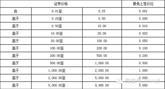 每种股份的价位,视其股价而定。以下是证券(债券除外)的价位表: