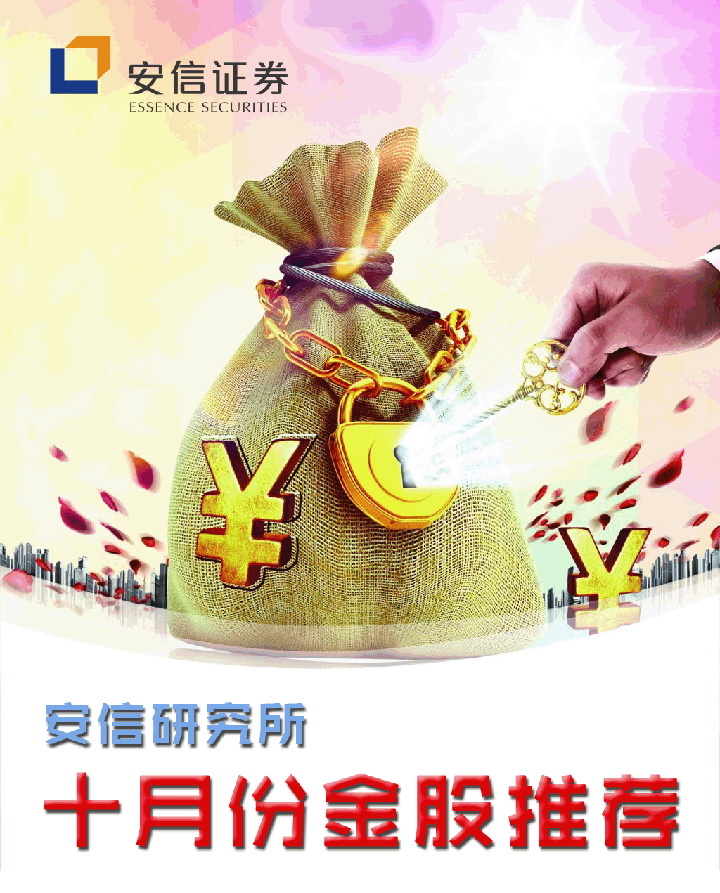600477 杭萧钢构 受益于配装式建筑推广,商业模式革新驱动业绩快速增长,估值极低。 600195 中牧股份 业绩稳定增长,估值便宜,股权激励预期。 002450 康得新 新材料绝对龙头,复合增速40%,17年22倍pe估值安全,裸眼3D、大屏触控、柔性材料、碳纤维静待爆发,年底赚估值切换的钱。 002511 中顺洁柔 生活用纸龙头,营销改善+开工率提升+成本下降,业绩高成长,且可持续。 000534 万泽股份 高温合金行业成长性强,壁垒极高,公司是行业新龙头,业绩释放强劲,印证技术实力和体制内认可,定增将打开增长空间。 中 游 603026 石大胜华 1)电解液溶剂龙头,具备提供五种溶剂能力,电池级DMC国内占率40%,受益于量价齐升; 2)六氟磷酸锂一期产能扩张到2000吨,预计四季度开始出产品,明年带来显著利润增厚。 300203 聚光科技 公司修改定增方案,拟向大股东父母募集资金不超过 73350 万元。公司为环境监测行业龙头企业,持续加大水环境治理业务拓展,积极转型环境综合服务商,紧紧抓住智慧环境及海绵城市业务发展机遇。 预计未来几年业绩增速保持 50%左右,增发完成后市值 147 亿。 300097 智云股份 未来有望大幅受益于OLED大趋势,定增加码高景气行业锂电及3C自动化设备。 000818 方大化工 最纯正、业绩最好军工电子标的,成长性极高,具备持续注入预期。 600548 深高速 高速资产质地优良,收益稳定;梅林关项目潜在收益巨大,贵龙项目存增值空间;转型大环保预期,或将抬升估值中枢;再提股权激励方案,彰显管理层信心。 下 游 600887 伊利股份 三季度环比销售改善可期,中期买点。停牌期间乳企和原奶型企业都有上涨。 000403 ST生化 1)狂免价格触底回升,我们认为这意味着渠道狂免去库存完成,ST 生化是狂免龙头; 2)上一波八因子、PCC 涨价周期中,以及全年涨幅中,ST 生化涨幅最小,属于血制品价值洼地; 3)从去年 12 月份锁定增发价格以来,一直没有启动再融资,从时间节点上推算,9月份股东大会剥离金兴酒店,10 月份应当是摘帽、增发等工作启动的最后时间窗口。 TMT 002530 丰东股份 000606 *ST易桥 以个人/家庭为代表的长尾纳服需求再度开启财税金融向上空间,“税改双杰”——丰东股份和*ST易桥作为企业纳税服务巨头,将长期受益个税改革所引发的增量市场空间。 结合财税金融“自上而下”的行业属性,纳税服务市场集中度将持续提升。 603869 北部湾旅 不动产登记保障业绩高增长,大数据,军工新业务蓄势待发。 300017 网宿科技 运营商光接入网升级,未来三年流量确定性高增长,CDN行业仍将保持50%增速。 公司私有云托管、社区云和云安全业务将在2017年放量。目前股价对应2017年PE=25X,兼具安全边际及成长性。 002281 光迅科技 全球第五大光器件厂商、国内光器件龙头,唯一拥有从芯片、器件、模块到子系统的一体化供应能力。互联网流量增强驱动光模块器件升级,硅光技术有望取得突破,高速光模块和芯片推出将大幅提升市场份额和盈利能力。 300025 华星创业 产业基金旗下互联港湾IDC、云计算领域黑马,处于高速成长期。重组收购公众信息进入反馈阶段,转型互联网基础设施运营服务商。目前市值58亿,2017年备考业绩3.3亿以上 金融地产 000666 经纬纺机 2016年上半年中融信托公司斯贡献利润占比超过40%,未来中融信托将进一步推动经纬纺机业绩释放。同事,公司H股私有化体现了大股东恒天集团巩固对公司控股权的决心,彰显了股东对公司未来发展的信心。 001979 招商蛇口 中报业绩靓丽,园区异军突起,模式逐步向全国输出。股价仍大幅低于员工持股和 NAV(22.4 元)估值,质地在地产龙头中最为突出,建议长期布局。 600816 安信信托 民营机制促进业务高速发展,业务结构持续优化,主动管理规模占比稳步提升,信托行业风险平稳下降,定增完成后公司资本实力将得到明显增强。
