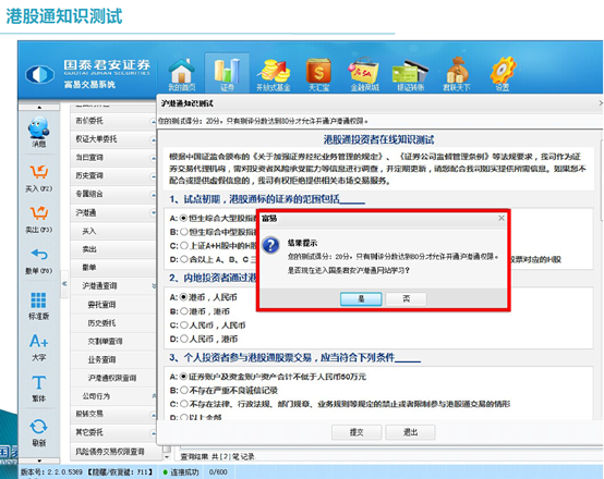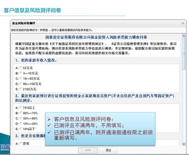 客户信息及风险测评问卷:已测评且满两年,则开通港股通权限之前须重新填写。