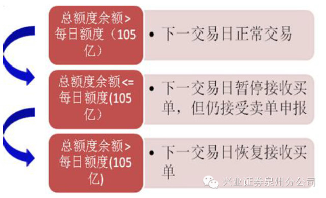 开市前时段的输入买卖盘时,如果当日余额用完,则不允许买入,但如有撤单且撤单释放额度后,当日已用额度小于105亿时,重新允许进行买入申报。