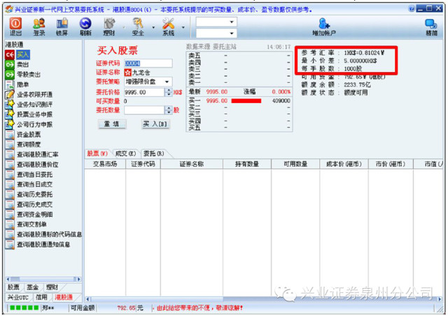 注意:由于当日额度余额计算的是买单的申报量,存在客户恶意下单占用额度的情况。由于受额度的控制的影响,会发生客户无法买入港股的风险。