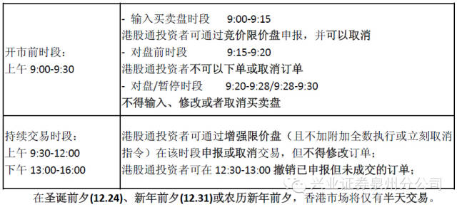 注意:参与港股通交易的客户申报订单,撮合配对上要将晚于港股市场的竞价盘。