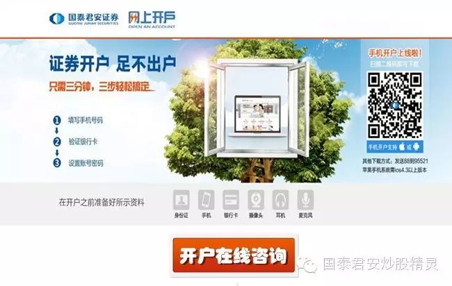 一、证券开户足不出户只需三分钟三步搞定:1、填写手机号码 2、验证银行卡3、设置账号密码