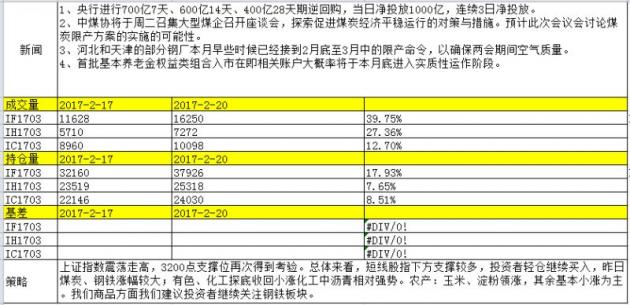 昆山弘业期货股指期货早评(2017/02/21)
