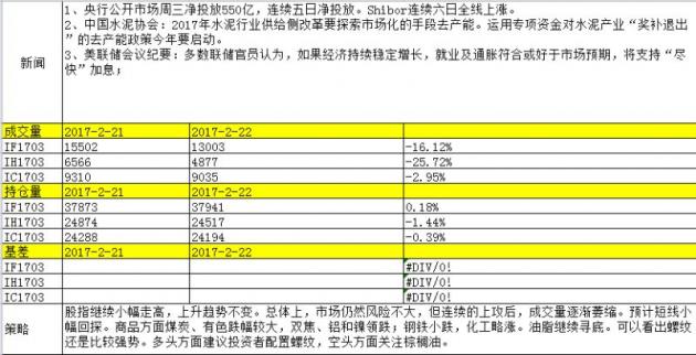 昆山弘业期货股指期货早评(2017/02/07)