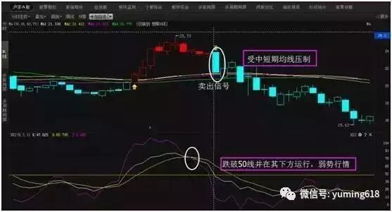 4、当KDJ曲线向下突破50以后,并且KDJ曲线在50以下区域运行,说明股价处于下跌趋势,这是KDJ指标发出的持币待涨信号,若是股价同时被中短期均线压制下行,此时投资者应该及时离场观望。