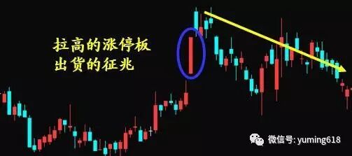 这个是与低位涨停板突破反着来的。利用大众对于涨停板的理解是想买都买不进,正当多数人第二天买入时,主力开始逢高派发。比如荣华实业7.13的涨停是建立在前期大幅上涨的基础之上,当多数人对于第二天的走势充满期待之时,出货正悄然进行中。