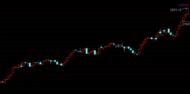 2)对付强主庄,即具有一根黄金柱支撑的黄金线,就以黄金线的价位乘以1.618计算。
