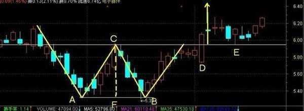 双底也叫“W底”,指的是股价长期下跌后逐步企稳,有时K线图上会形成双重底形态,如果B点成交量逐步放大,表明股价即将启动上涨,散户可积极进场抄底。