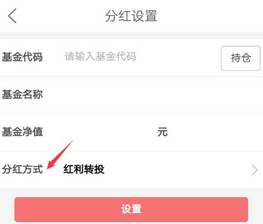 在“持仓”中选择基金,选择分红方式后“设置”即可。