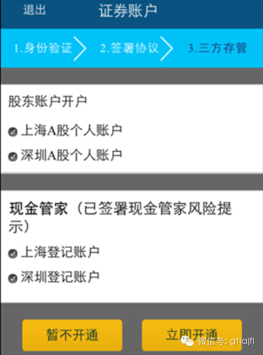 一、身份证、手机、银行卡缺一不可哦,点击开户申请进行新开户