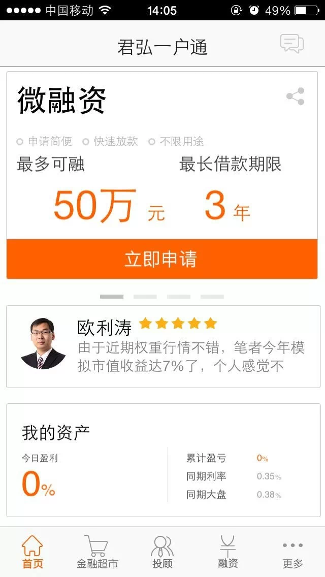 登录edai.gtja.com或者公司官网www.gtja.com,在“君弘金融商城”找到“微融资”立即申请!