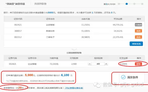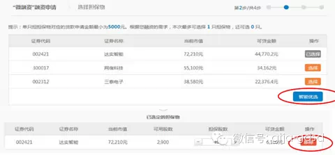 您可手动选择担保物,也可通过“智能优选”自动匹配最优方案。