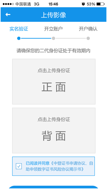 (4)上传身份证正反面,拍的身份证照片最好明亮、清晰