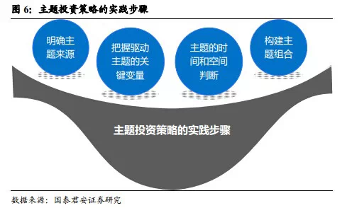 主题投资策略的实践步骤包括明确主题来源、把握驱动主题的关键变量、主题的时间和空间判断、构建主题组合等。
