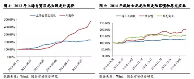 影响力:龙头股+想象空间足够大。(1)一个主题要有影响力必须有 3~4家的龙头。如 2013 年上海自贸区主题的外高桥、上港集团、上海物贸等,2014 年底上海迪士尼主题的界龙实业和陆家嘴。所谓龙头股,是这个主题板块涨幅最大的股票,很可能不是最具价值的,而是盘子小、无机构和研究报告、无基本面支撑的这类股票。(2)另外影响力要求这个主题的想象空间足够大,只有拥有非常大的想象空间(研究机构乐观预计市场空间,比照海外市场龙头等),且未来市场空间短期内无法证实也无法证伪,这个主题的持续性才能更好。